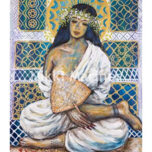 An unlikely sources of artistic inspiration in this depiction of a Samoan woman is mosque architecture.